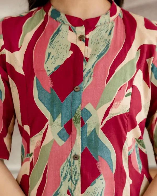 This A-Line Cotton Co-ord Set features a collar neckline, button-down detailing (with one functional button and the rest for design), and a side pocket for added convenience. Paired with matching straight-fit pants.